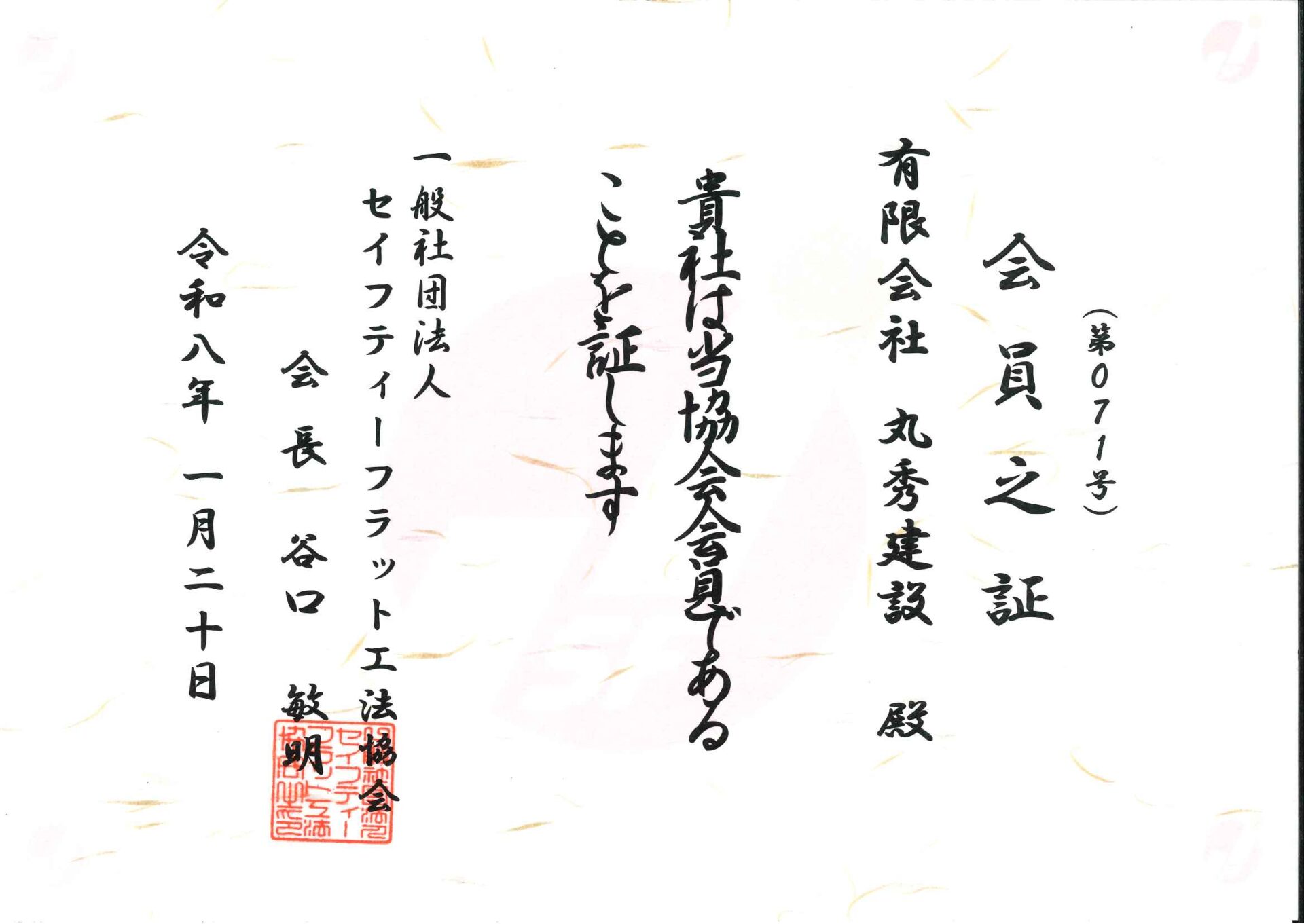 この度、セイフティフラット工法の協会に加入させていただきました。